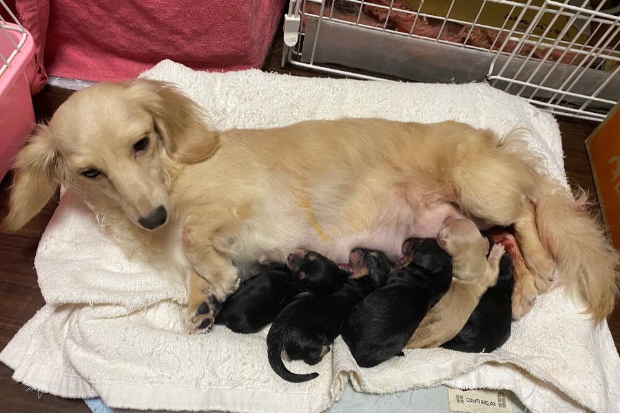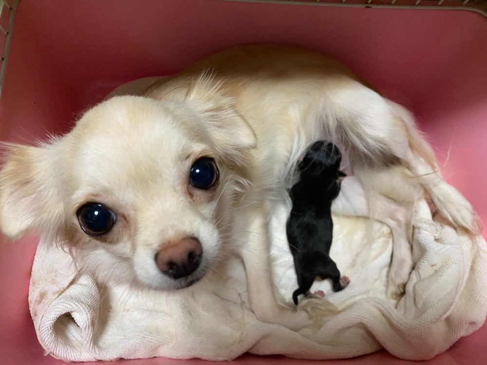 レントゲンを撮ってもらって、5頭中1頭、最後かもしれない子が逆子っぽくて、大きい子だったので、引っかかってしまうかもしれないとの事で、帝王切開をしました。